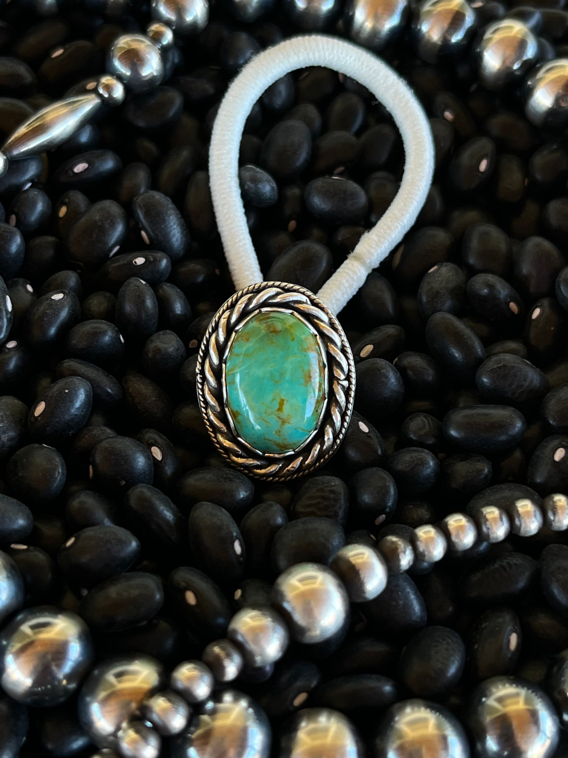 Royston turquoise and .925 Sterling silver hair tie